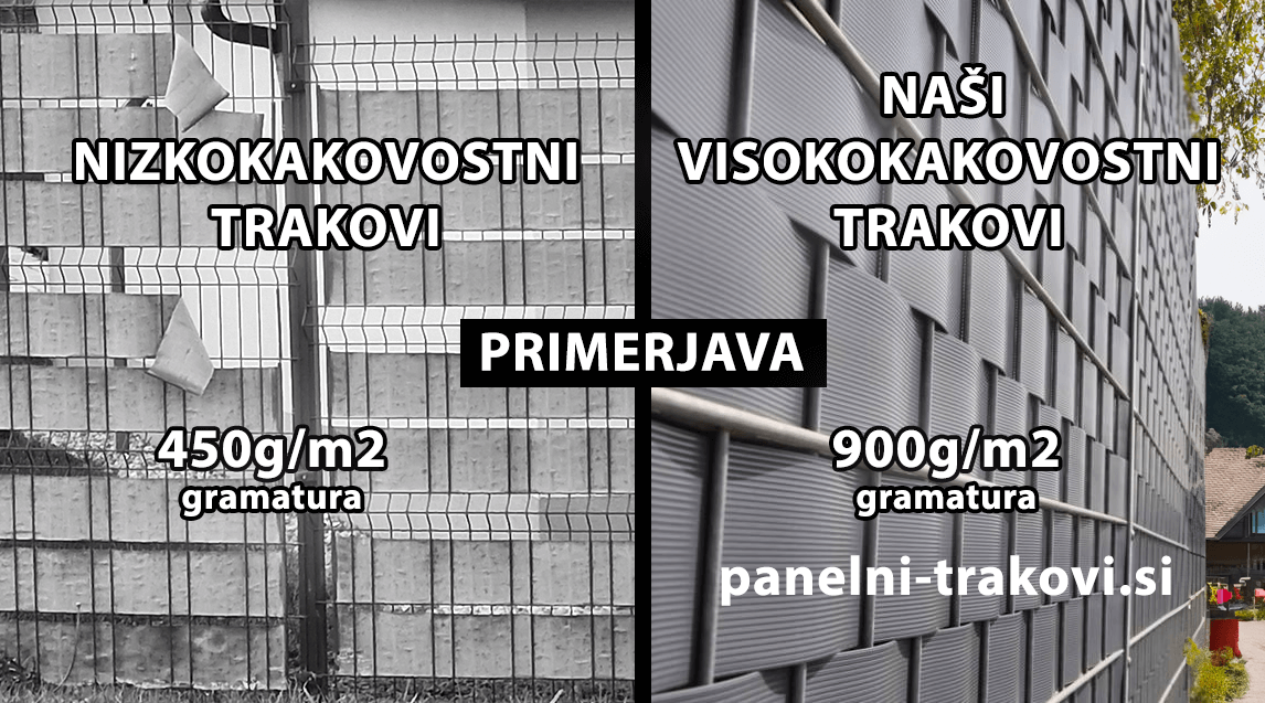 Na voljo so trakovi v treh različnih širinah, kar omogoča prilagoditev različnim tipom ograj ter ustvarjanje vizualno usklajenega in funkcionalnega videza.